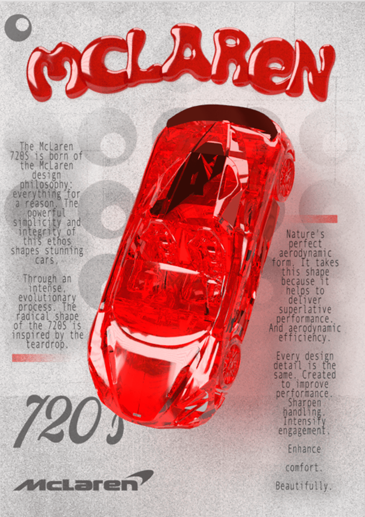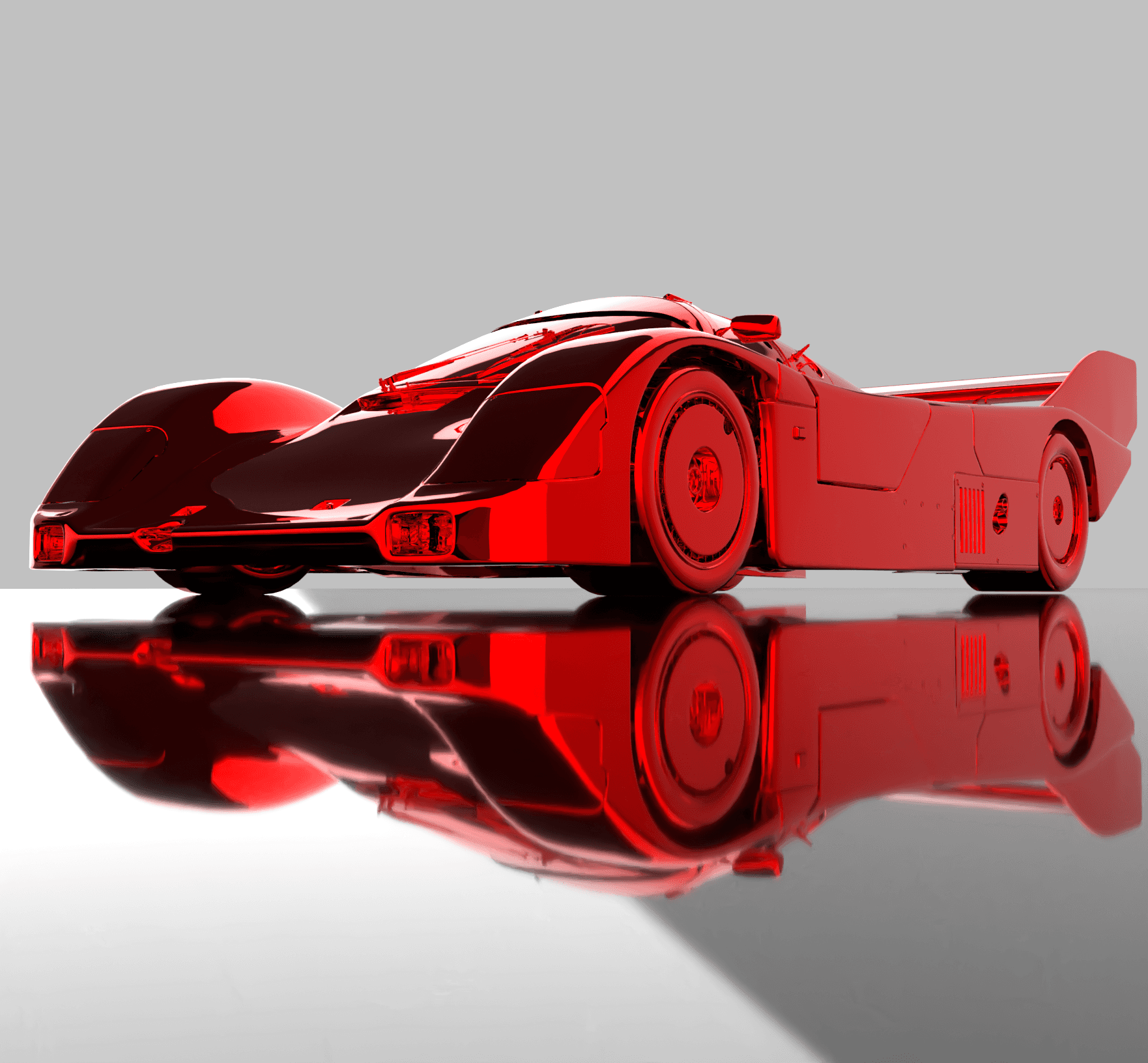 Cette Porsche rouge translucide a été entièrement modélisée en 3D, puis intégrée avec soin dans la composition d’une affiche afin de créer un visuel moderne et percutant.